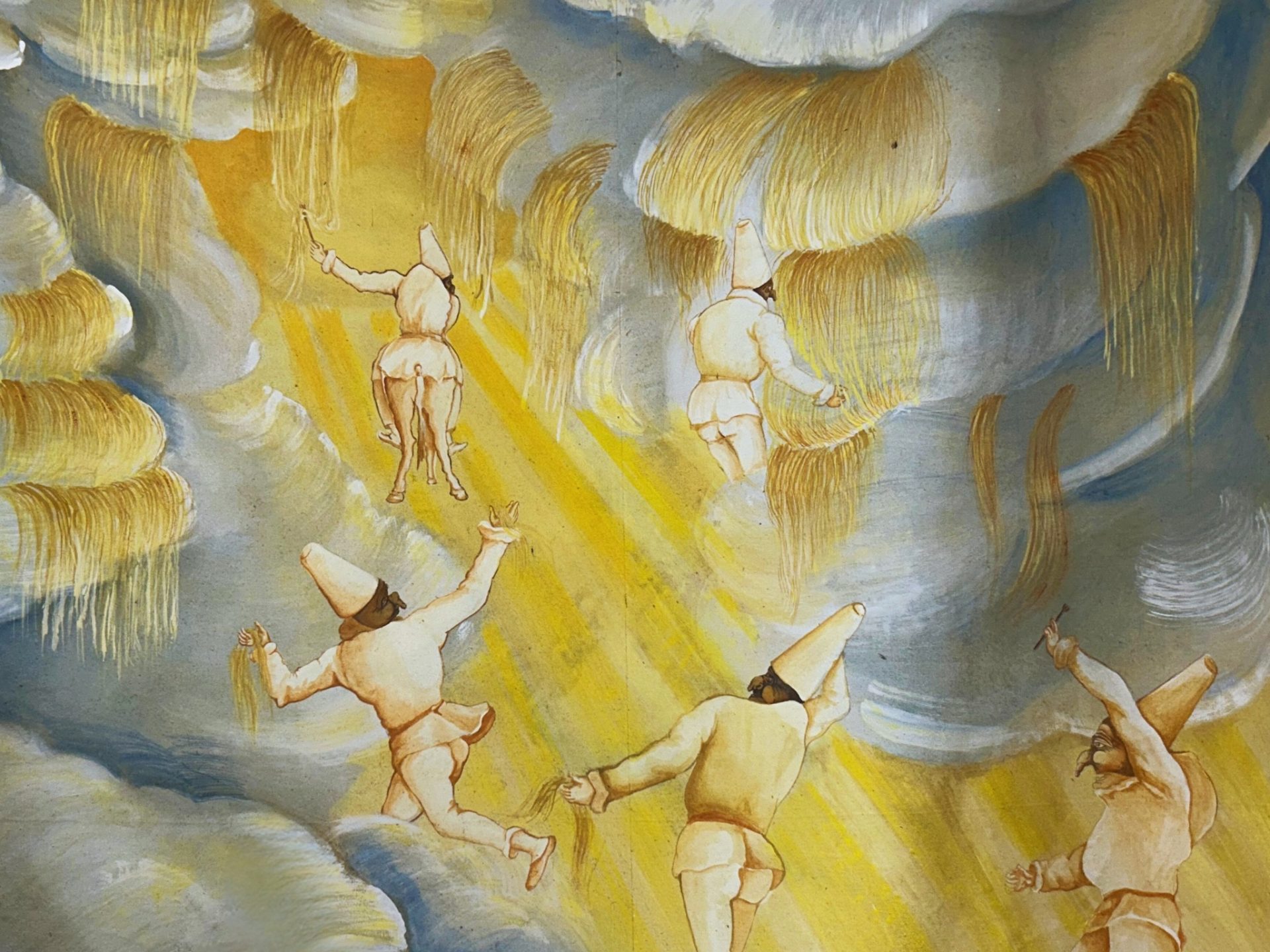 La thématique autour du clown, du cirque et de Pulcinella, un personnage emblématique de la commedia Del Arte en Italie (Polichinelle en France).